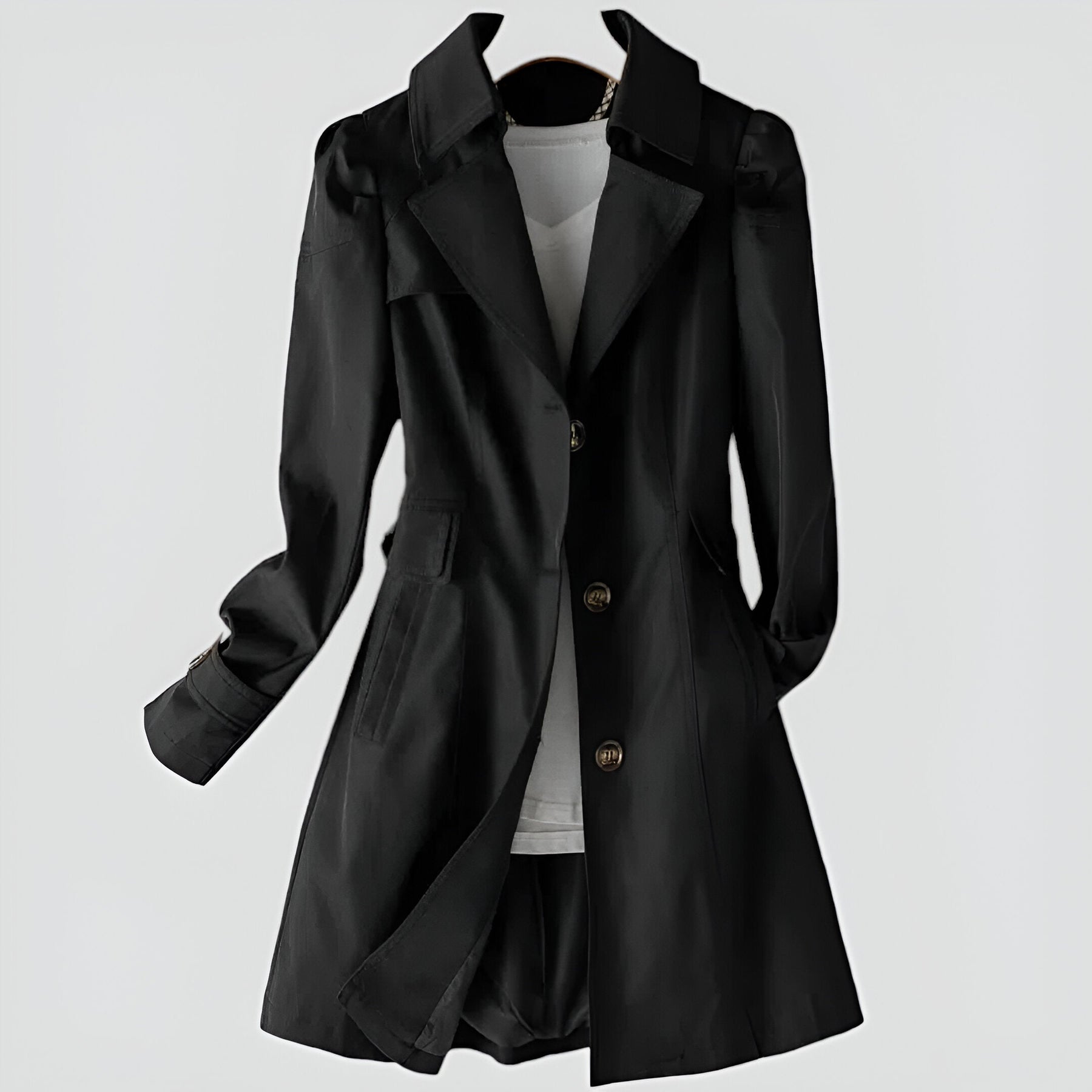 Tijdloze stijl - Het single-breasted ontwerp en de middellange lengte maken het een chique en veelzijdig kledingstuk voor elke gelegenheid.